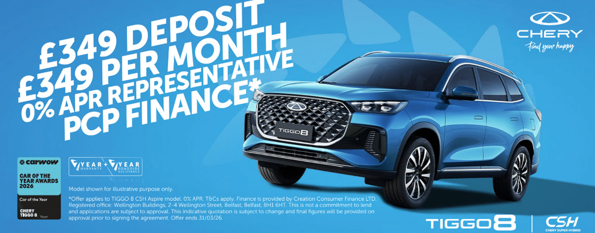 The All New Chery TIGGO 8 SUV is now available at Bassetts Chery. Call us now on 01656 662999 (Bridgend) for more information.