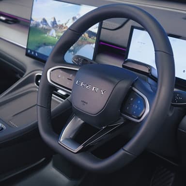 Dual 15.6” LCD screen display useful vehicle information, controls the intuitive infotainment system and Hello Chery voice commands.